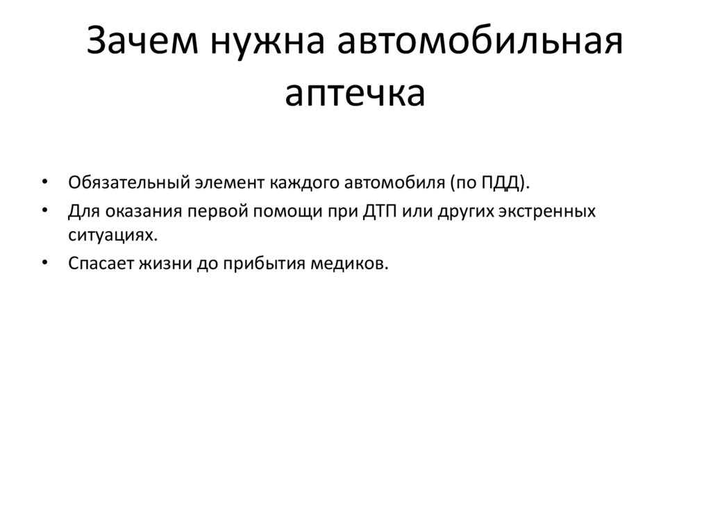Автомобильная аптечка• Зачем она нужна, что в ней должно быть и как правильно