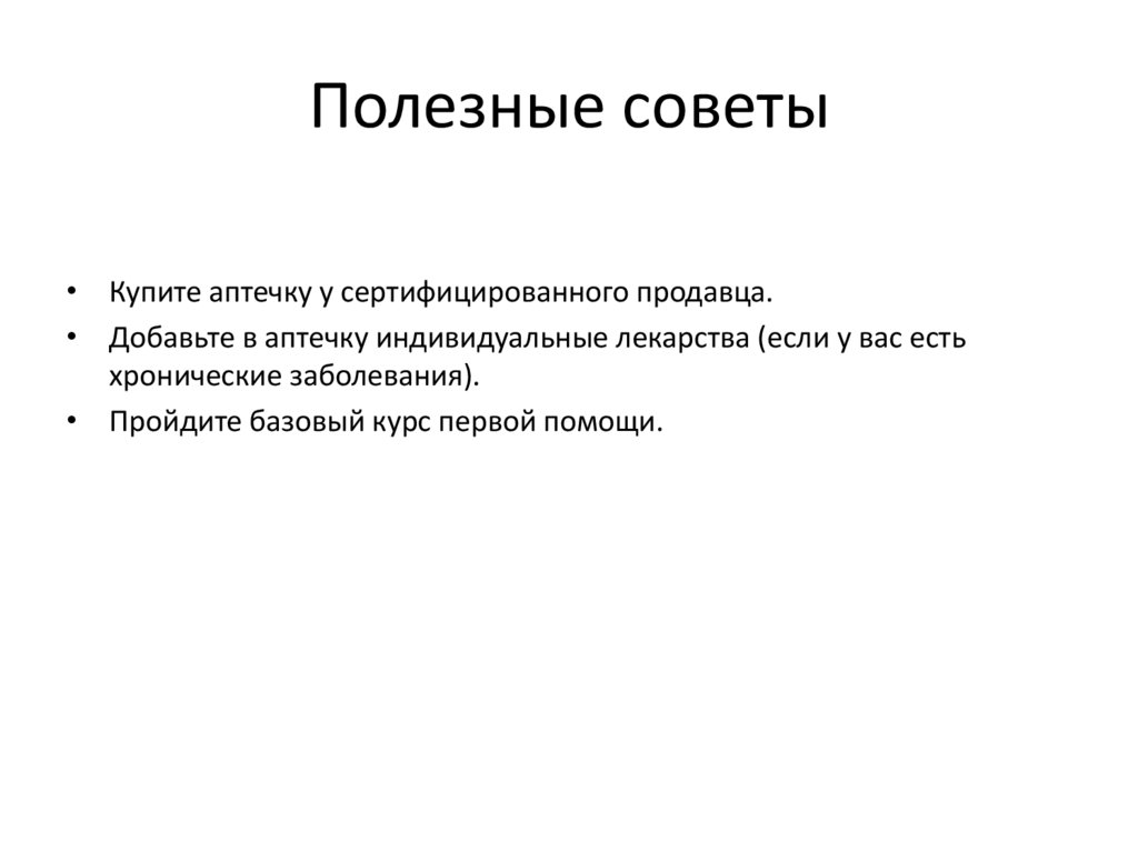 Полезные советы• Купите аптечку у сертифицированного продавца.