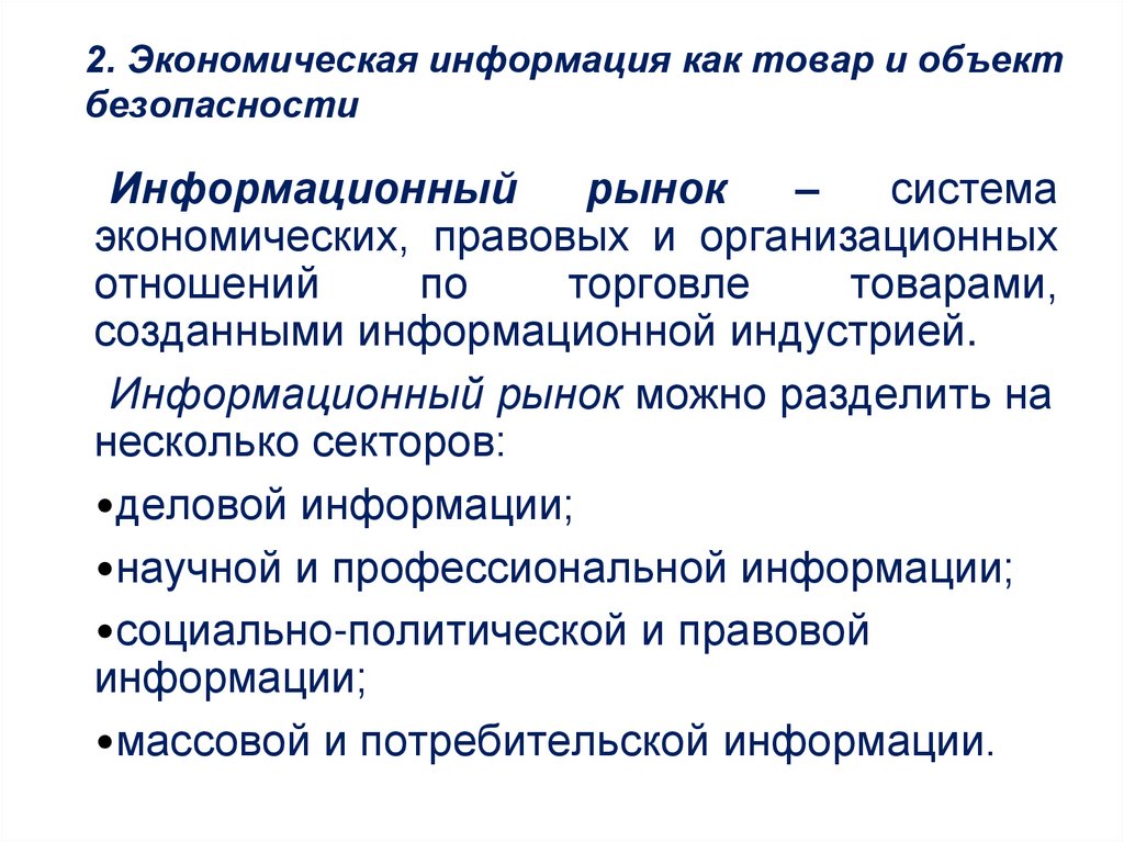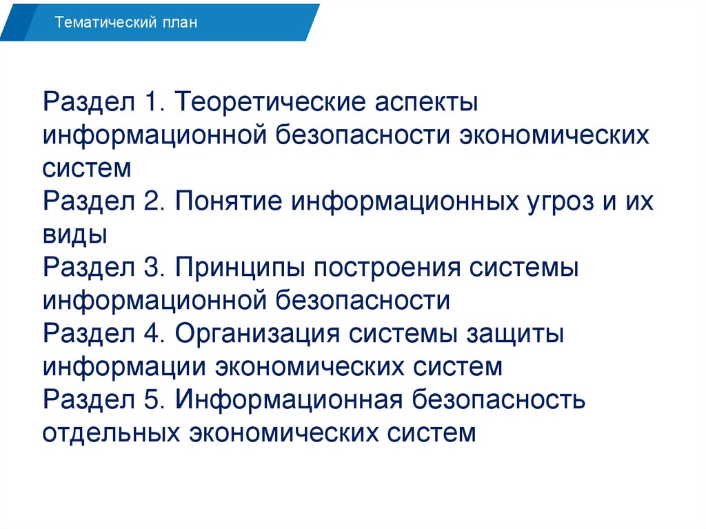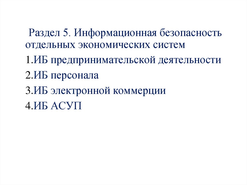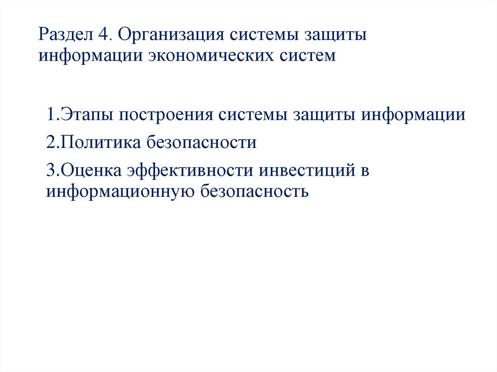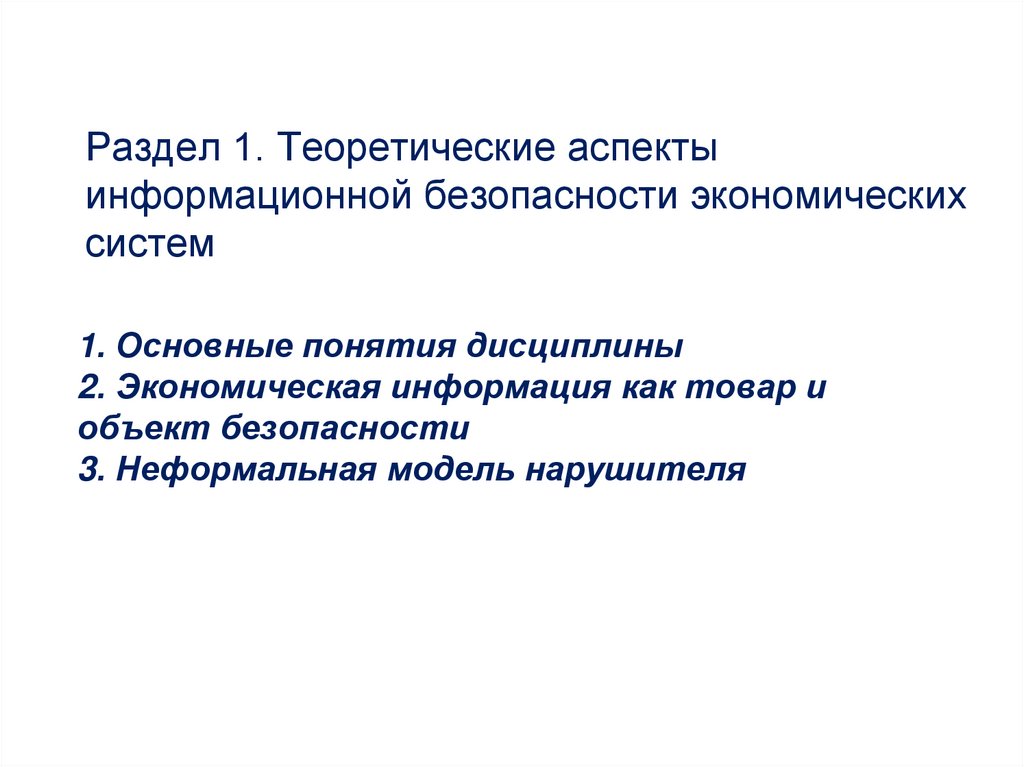 Раздел 1. Теоретические аспектыинформационной безопасности экономических