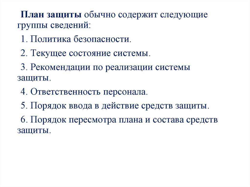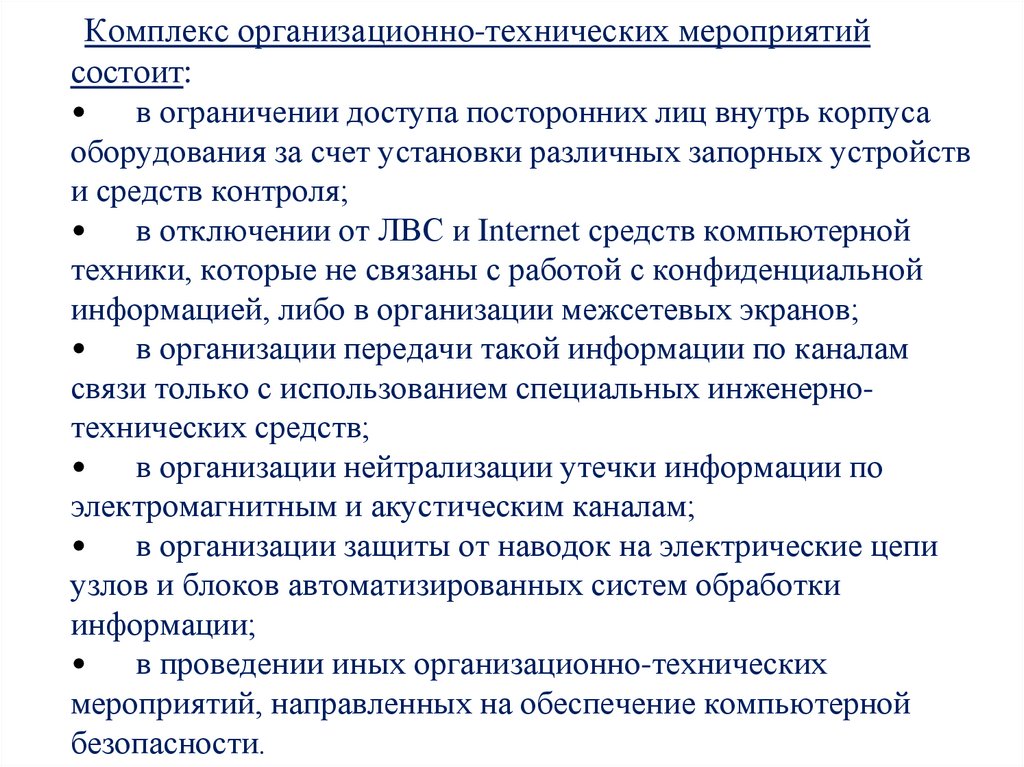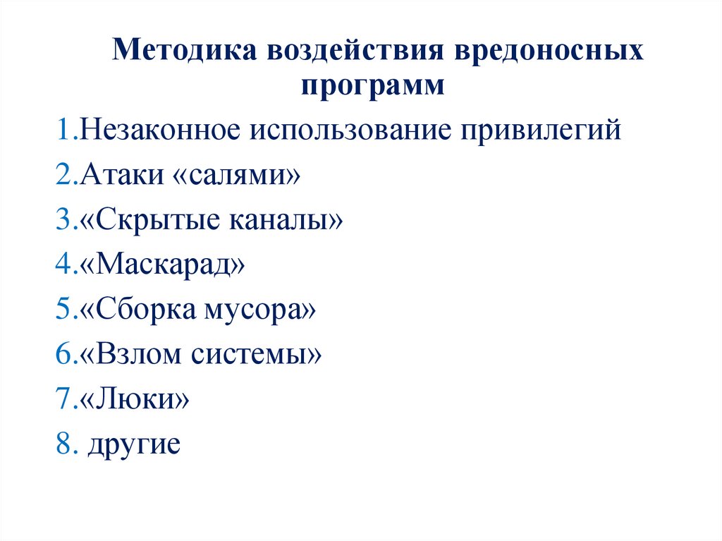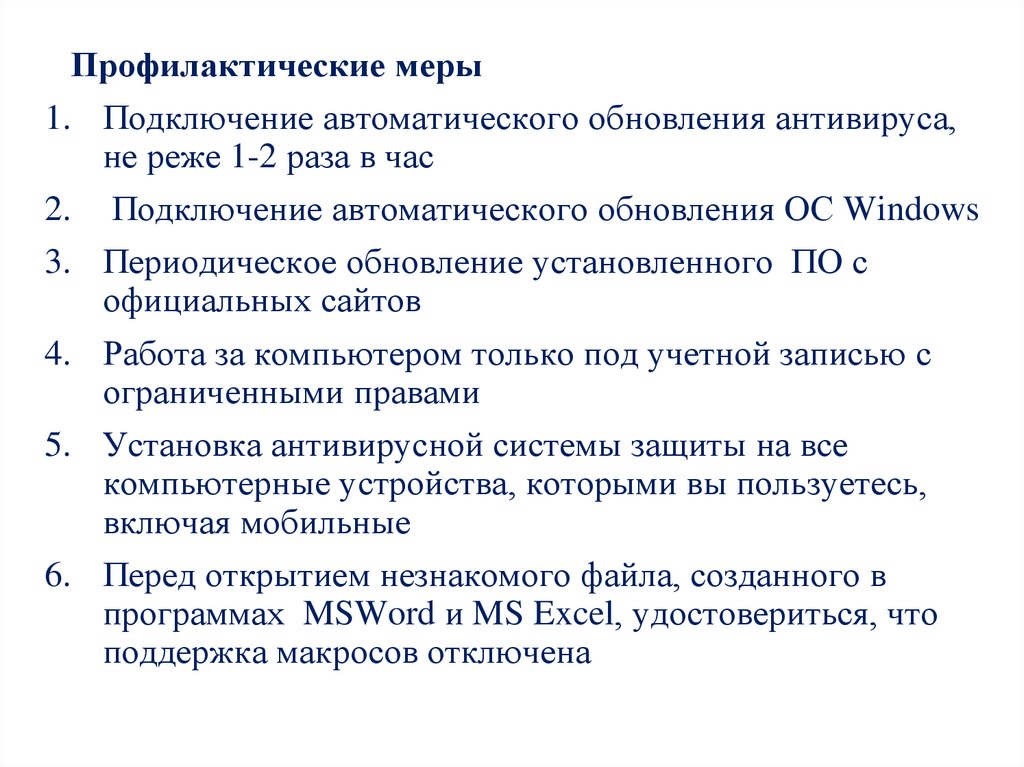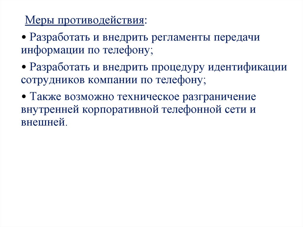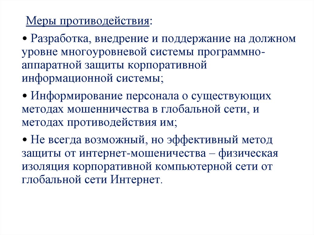 Меры противодействия:• Разработка, внедрение и поддержание на должном