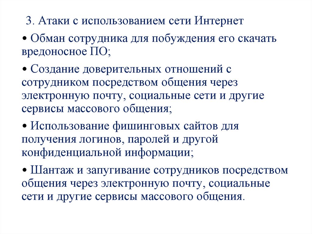 3. Атаки с использованием сети Интернет• Обман сотрудника для побуждения его скачать