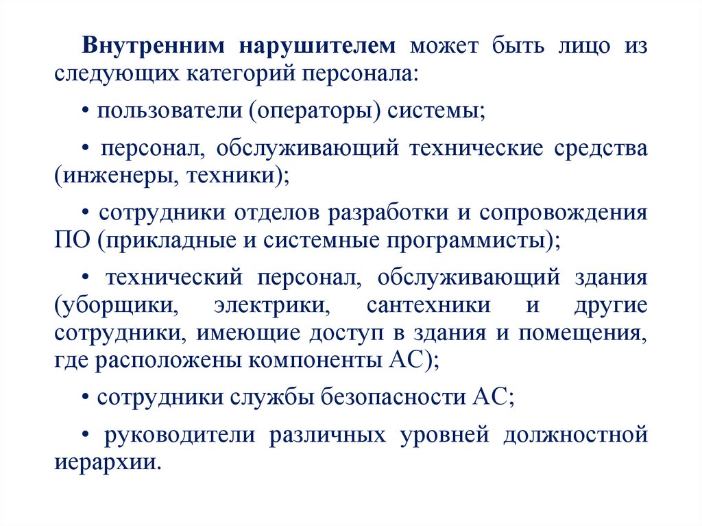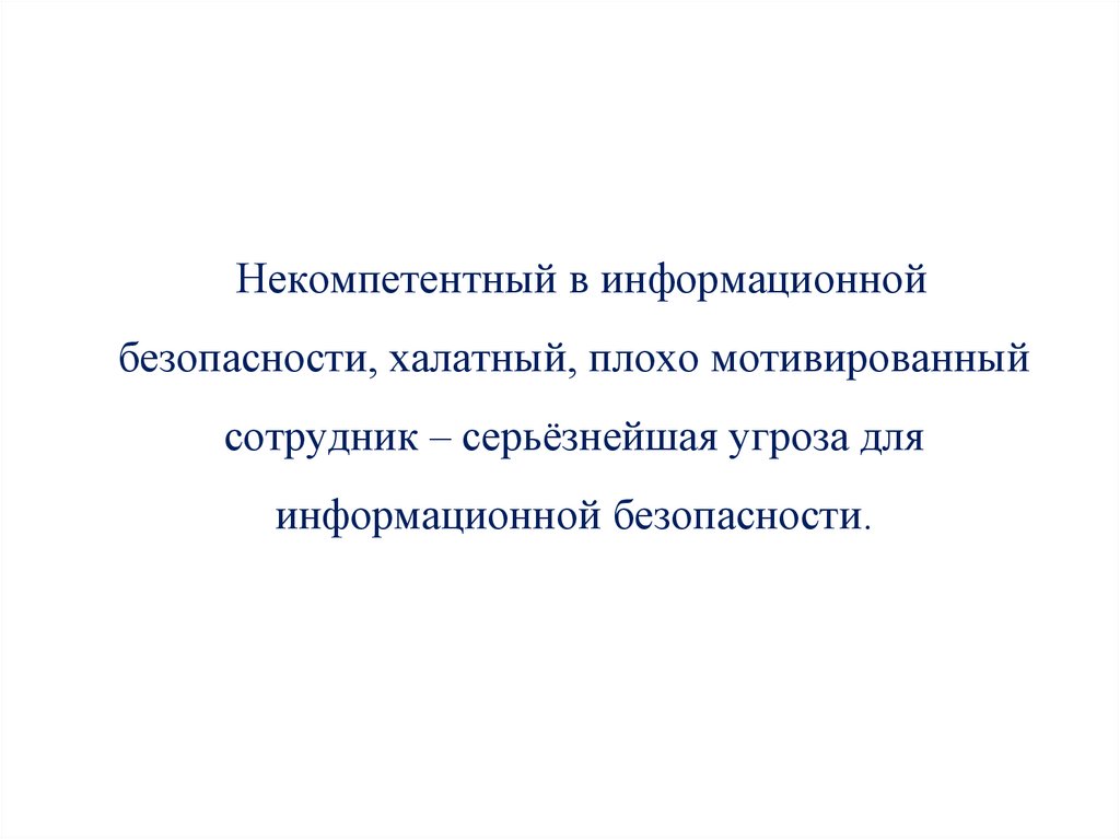 Некомпетентный в информационнойбезопасности, халатный, плохо мотивированный