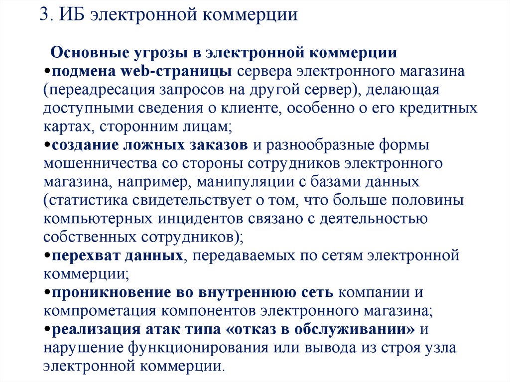 Основные угрозы в электронной коммерции•подмена web-страницы сервера электронного магазина
