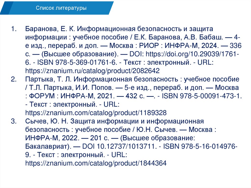 информации : учебное пособие / Е.К. Баранова, А.В. Бабаш. — 4е изд., перераб. и доп. — Москва : РИОР : ИНФРА-М, 2024. — 336