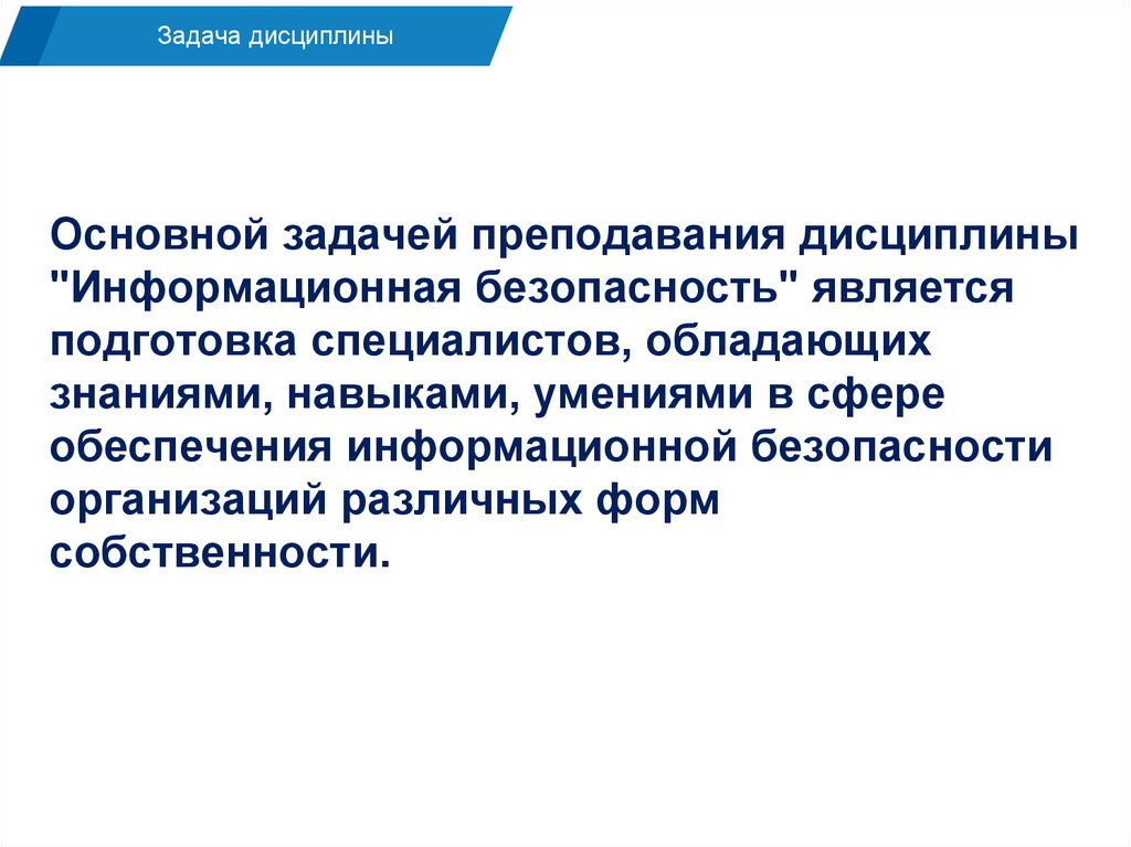 Задача дисциплиныОсновной задачей преподавания дисциплины