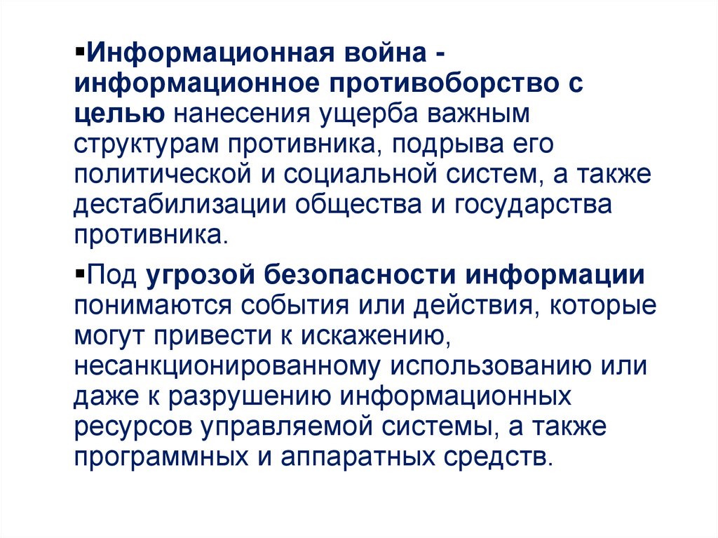 Информационная война информационное противоборство сцелью нанесения ущерба важным