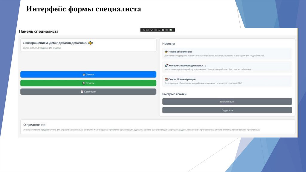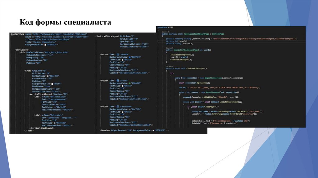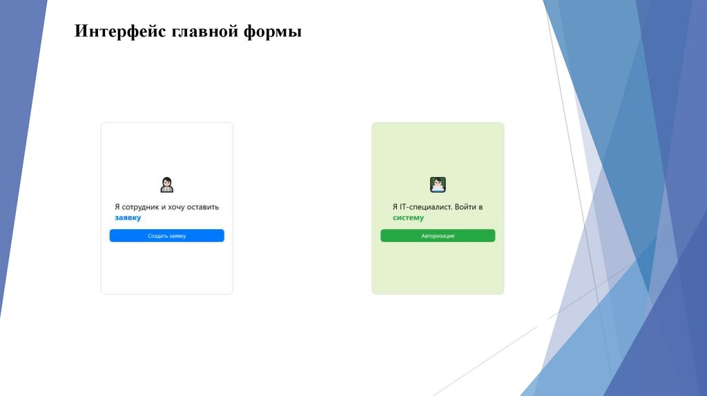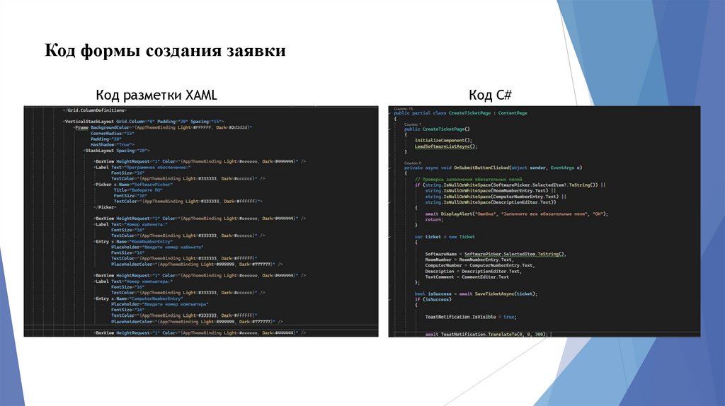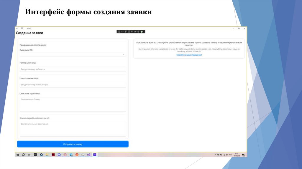 Интерфейс формы создания заявки13. Код формы создания заявки