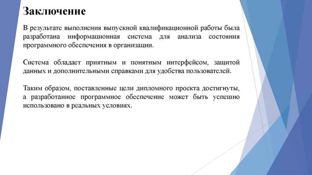 ЗаключениеВ результате выполнения выпускной квалификационной работы была
