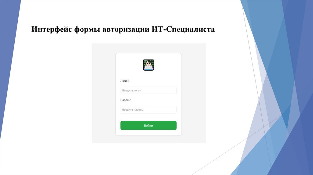 Интерфейс формы авторизации ИТ-Специалиста7. Код формы авторизации ИТ-специалиста