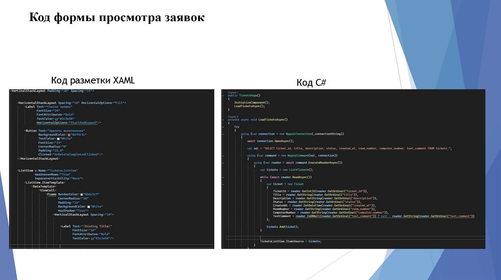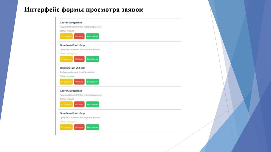 Интерфейс формы просмотра заявок9. Код формы просмотра заявок