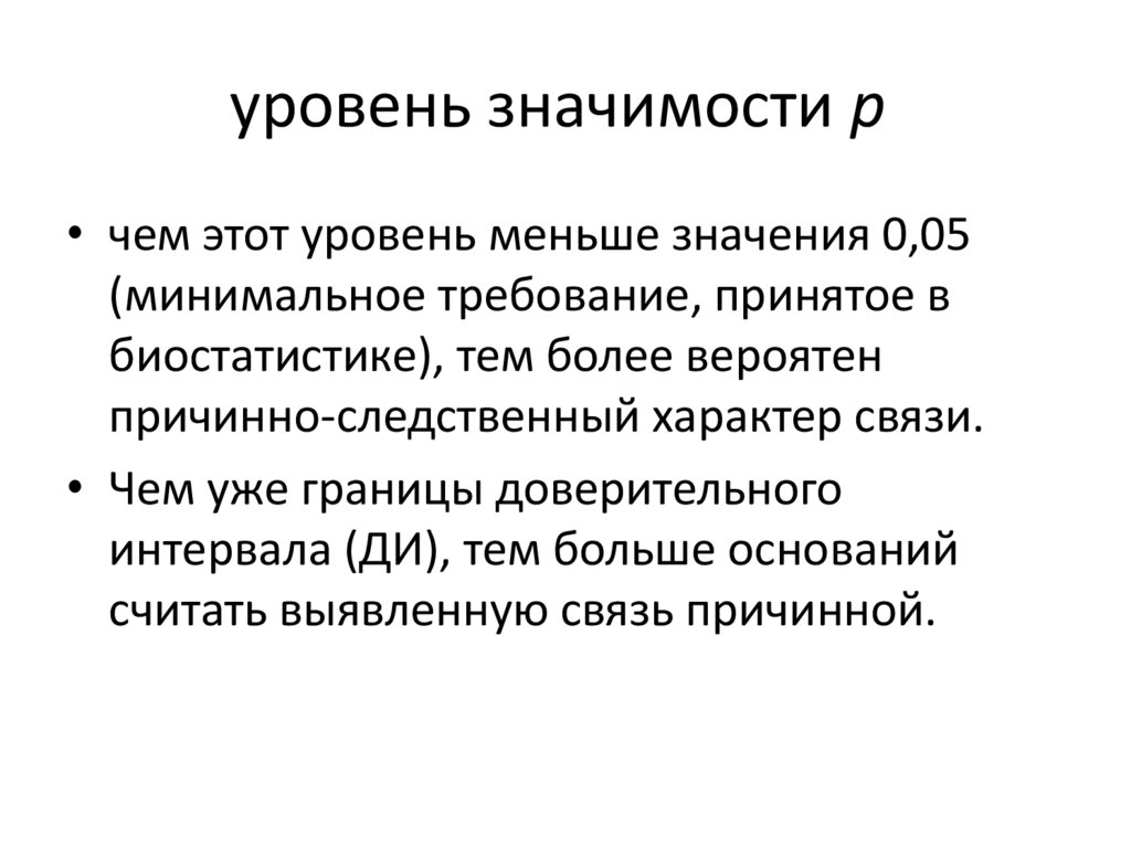 уровень значимости р• чем этот уровень меньше значения 0,05