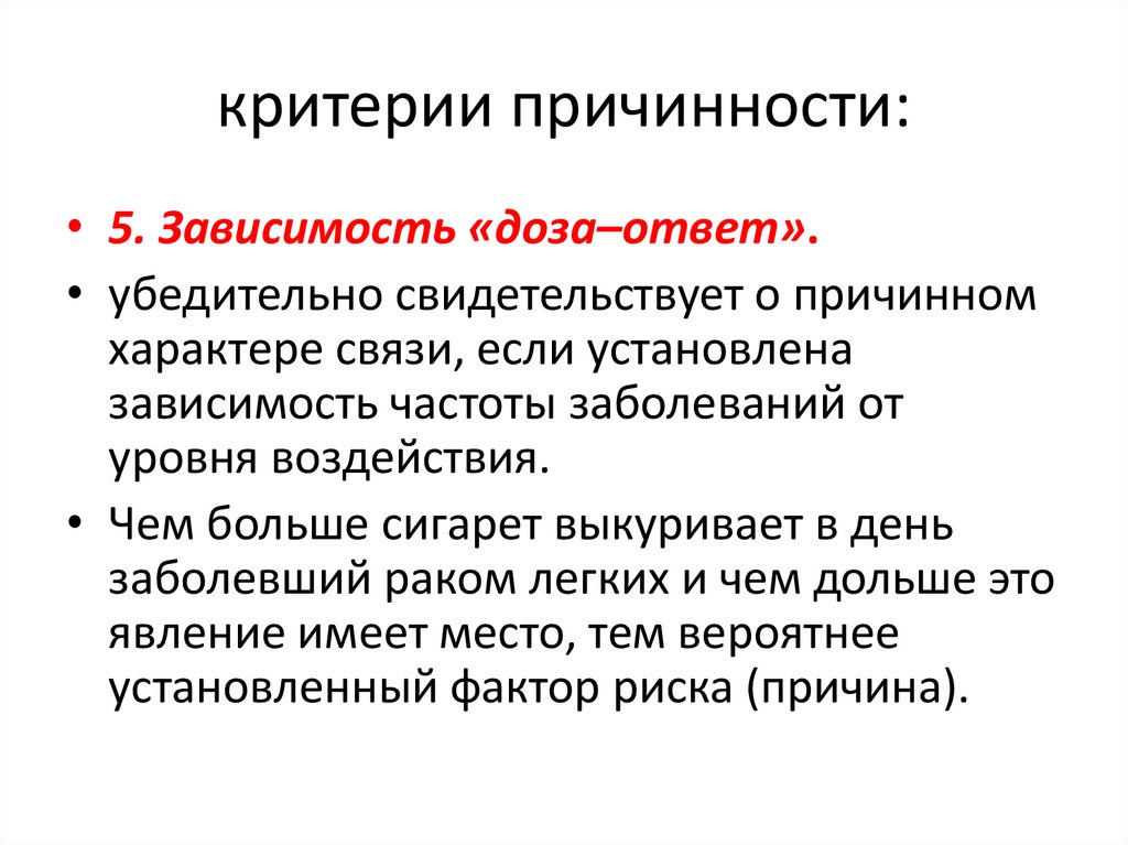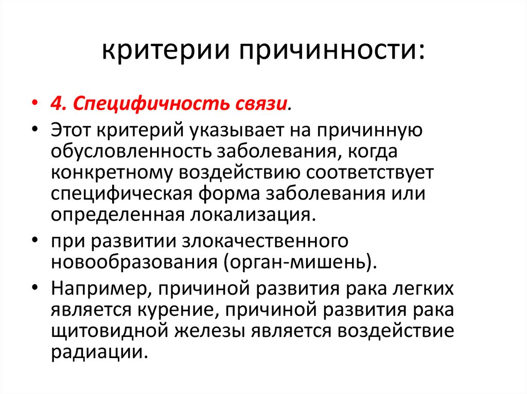 • 4. Специфичность связи.• Этот критерий указывает на причинную