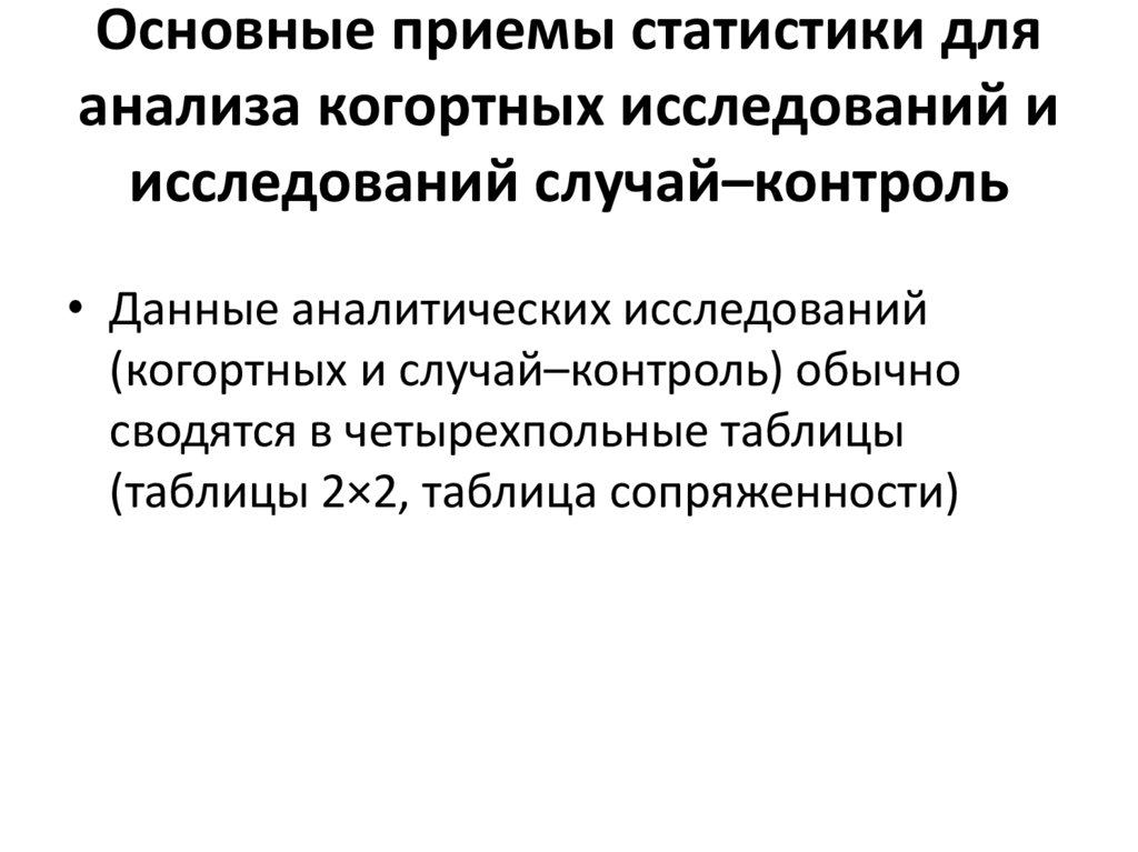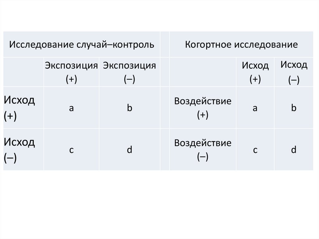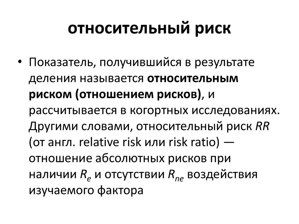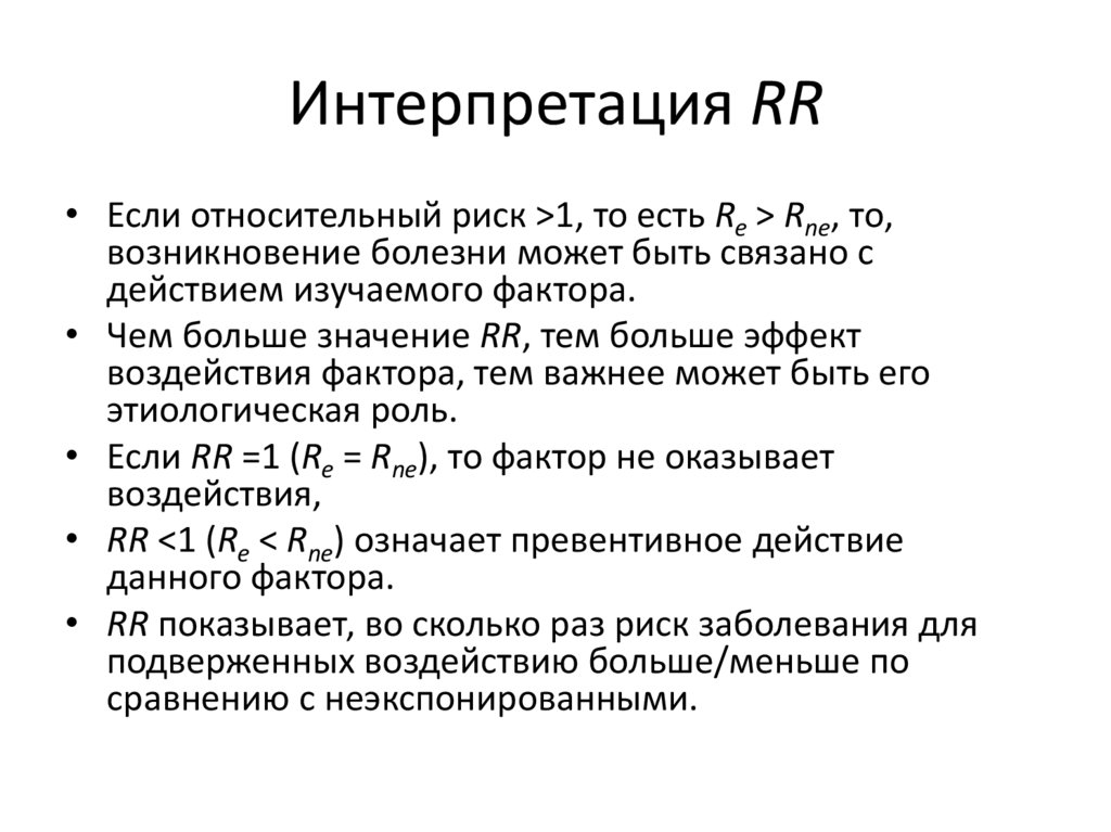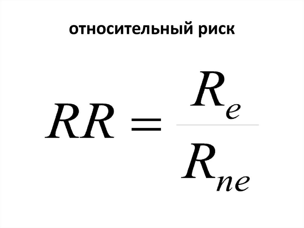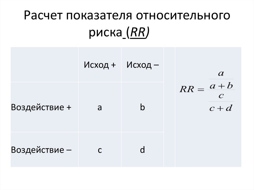 • Относительный риск (RR)RR= [a/(a+b)]/[c/(c+d)]
