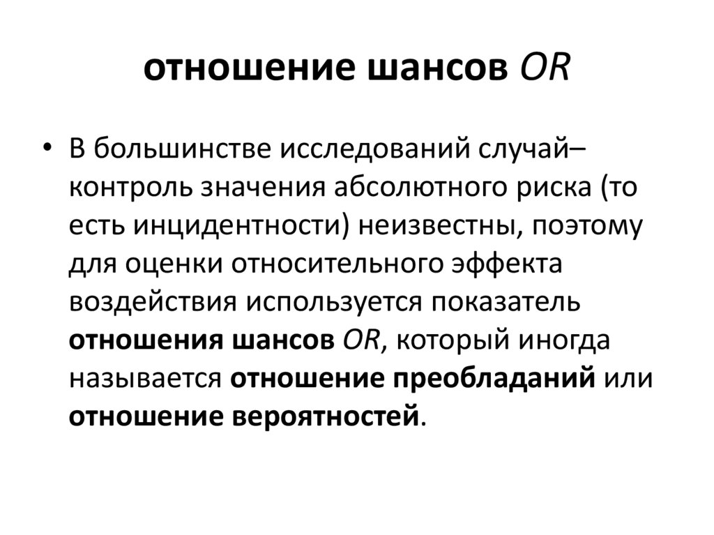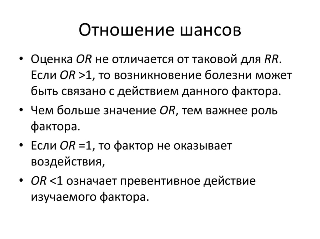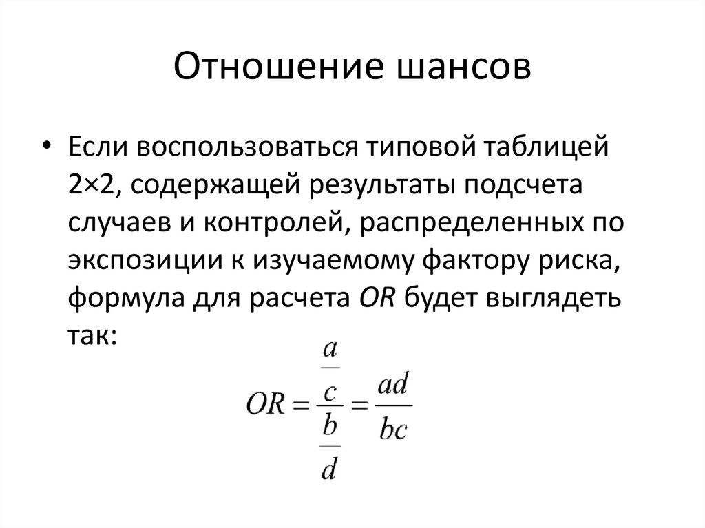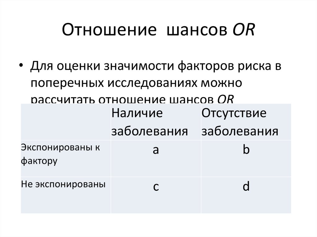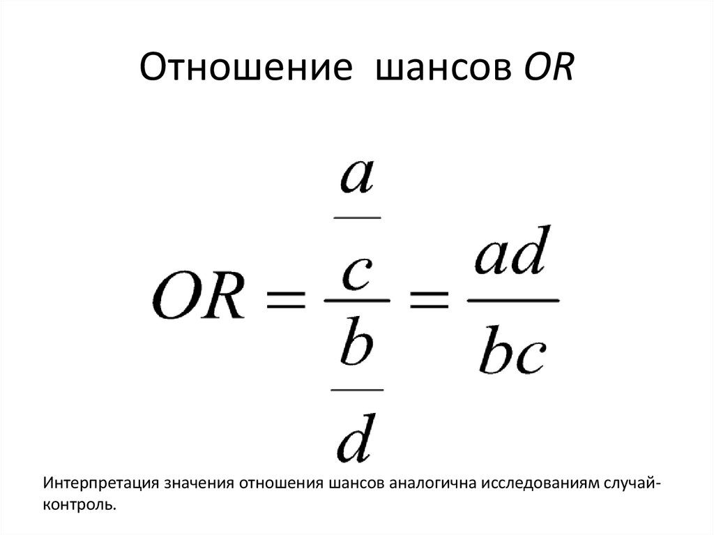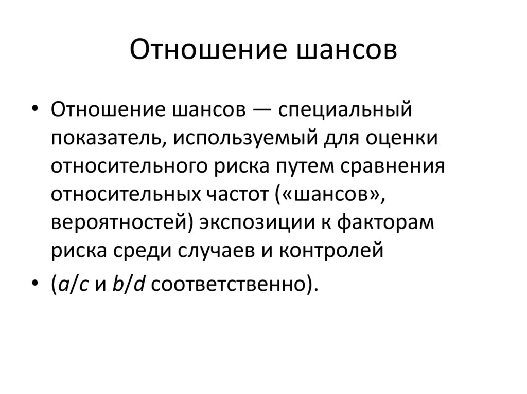 • Отношение шансов (OR) OR=(a/b)/(c/d)