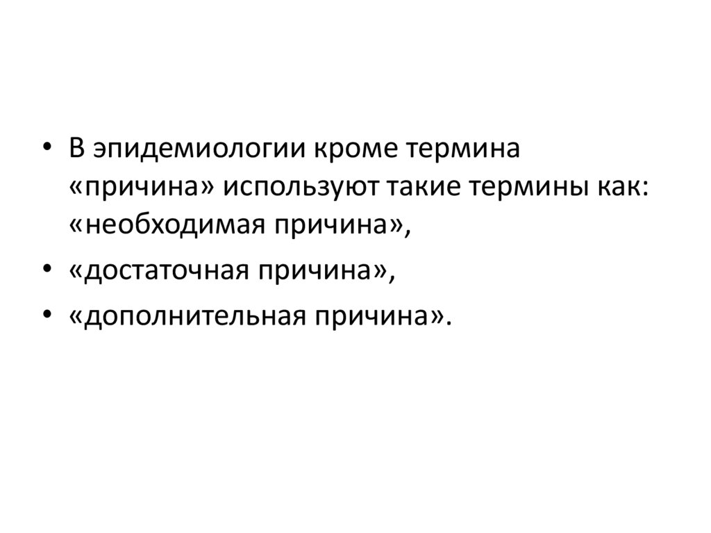 • В эпидемиологии кроме термина«причина» используют такие термины как: