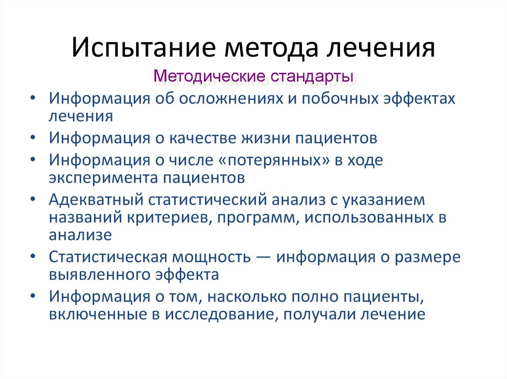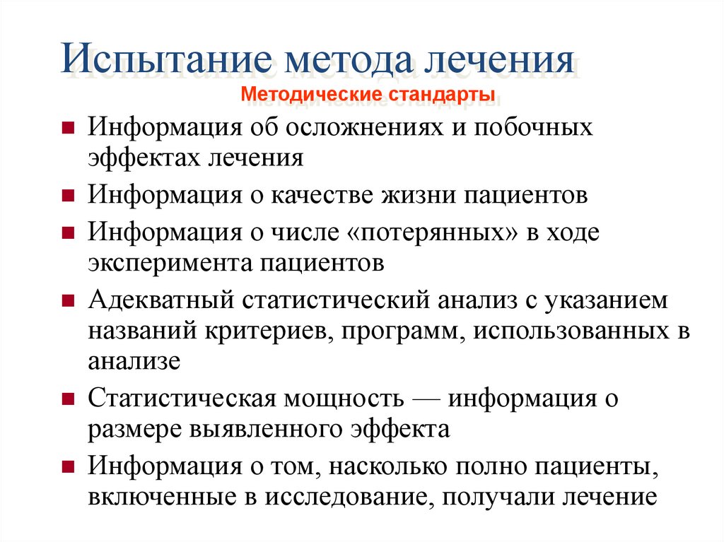 Методические стандарты• Информация об осложнениях и побочных эффектах