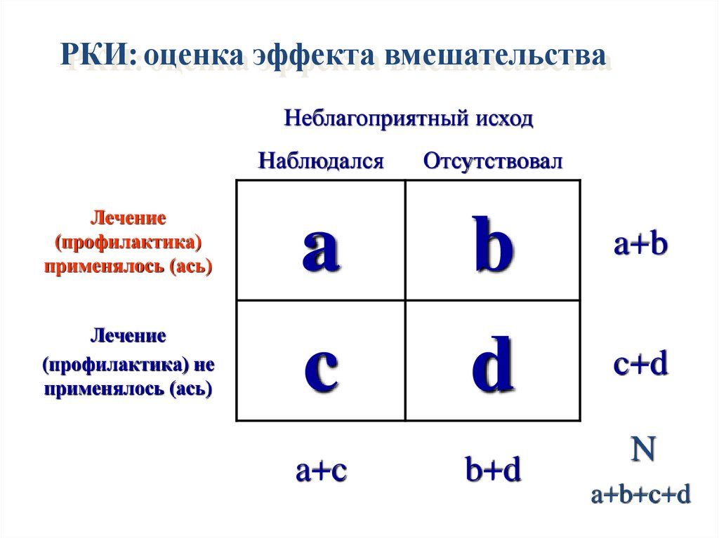 РКИ: оценка эффекта вмешательстваНеблагоприятный исход