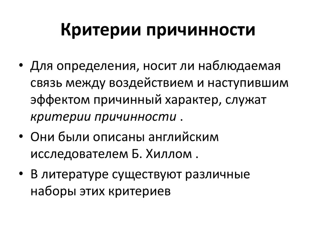 • Для определения, носит ли наблюдаемаясвязь между воздействием и наступившим