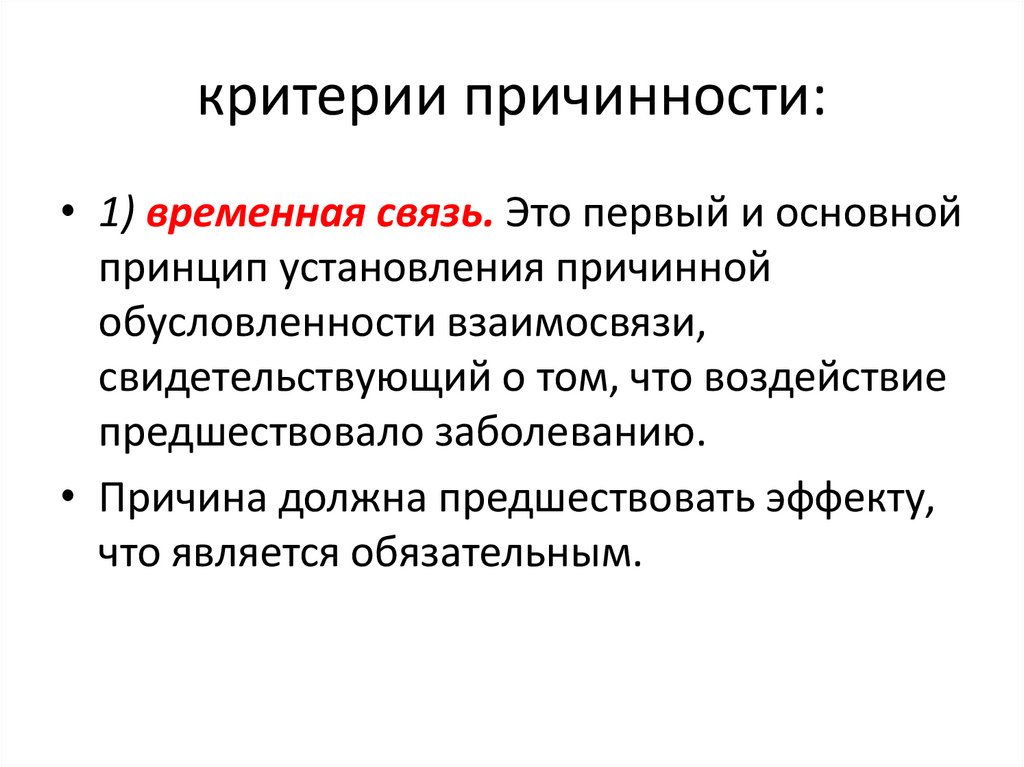 • 1) временная связь. Это первый и основнойпринцип установления причинной