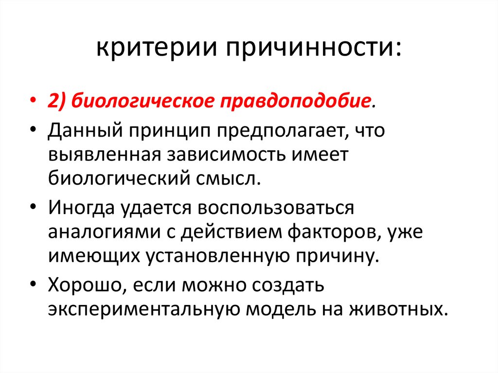 • 2) биологическое правдоподобие.• Данный принцип предполагает, что