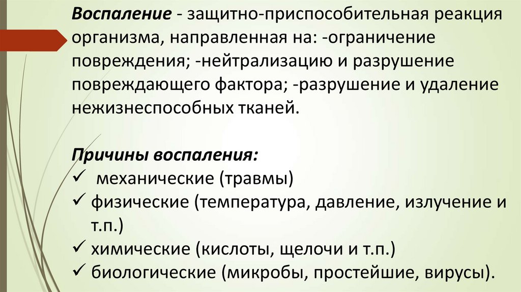 Воспаление - защитно-приспособительная реакцияорганизма, направленная на: -ограничение
