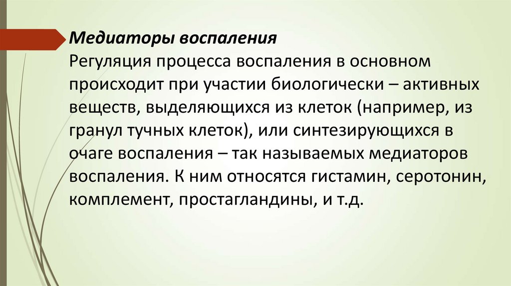 Медиаторы воспаленияРегуляция процесса воспаления в основном