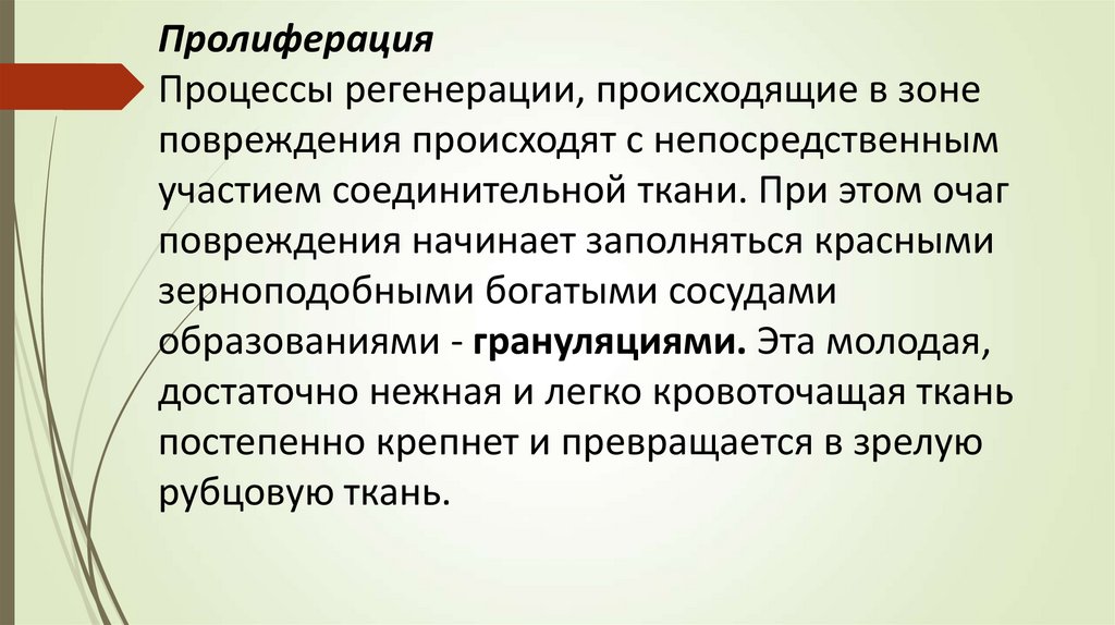ПролиферацияПроцессы регенерации, происходящие в зоне