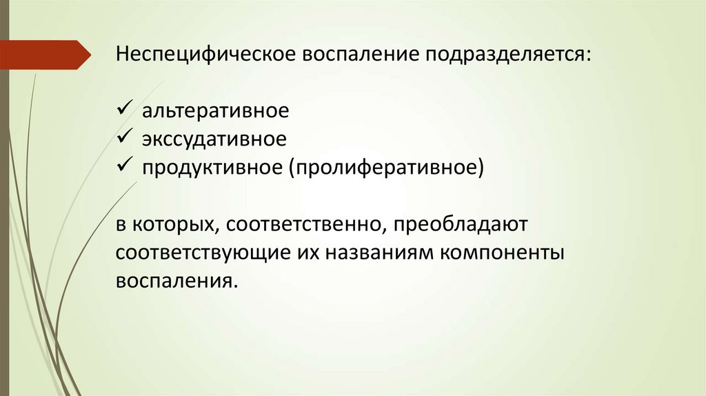 Неспецифическое воспаление подразделяется:альтеративное