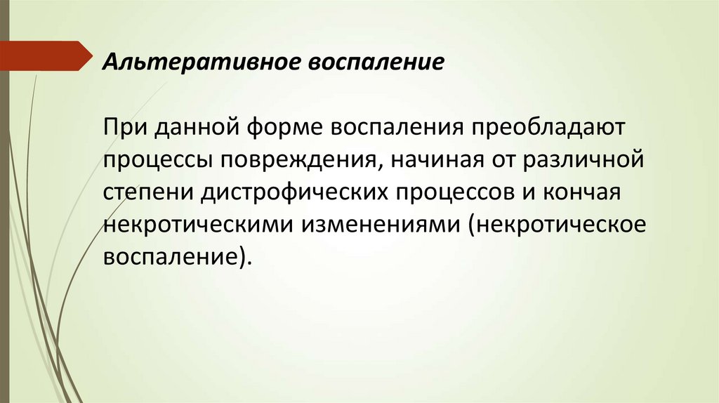 Альтеративное воспалениеПри данной форме воспаления преобладают