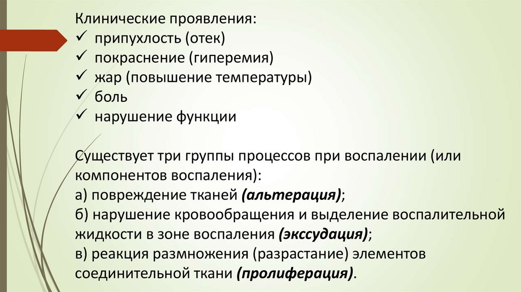 Существует три группы процессов при воспалении (или