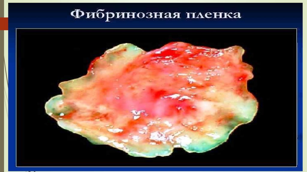 сероватые пленки фибринозного экссудата. Если