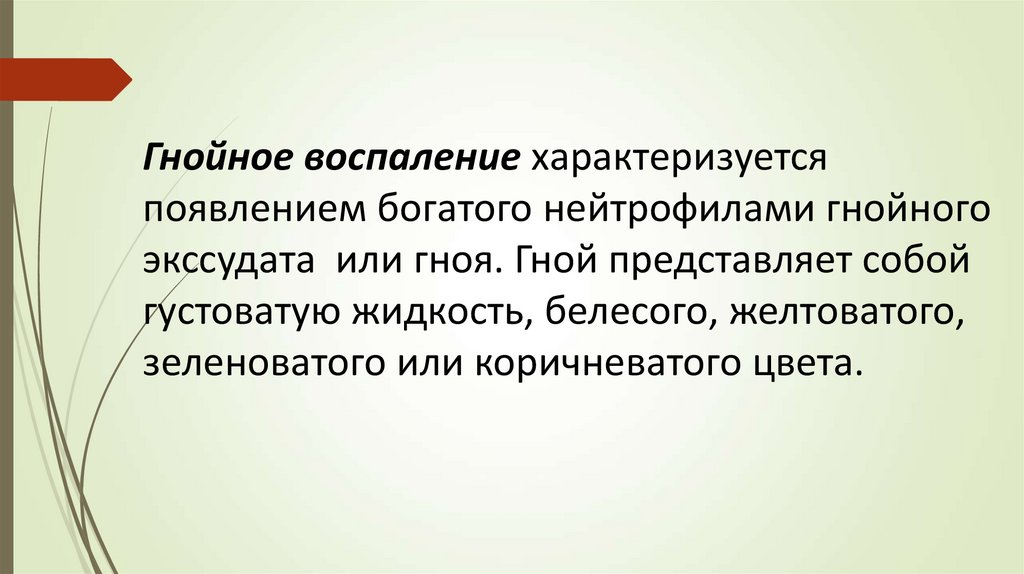Гнойное воспаление характеризуетсяпоявлением богатого нейтрофилами гнойного