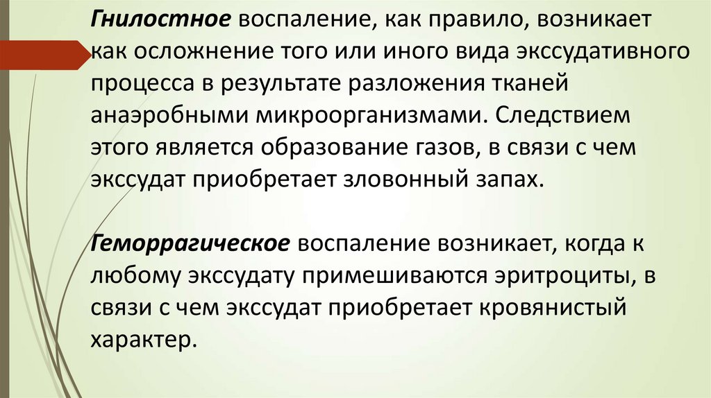 Гнилостное воспаление, как правило, возникаеткак осложнение того или иного вида экссудативного