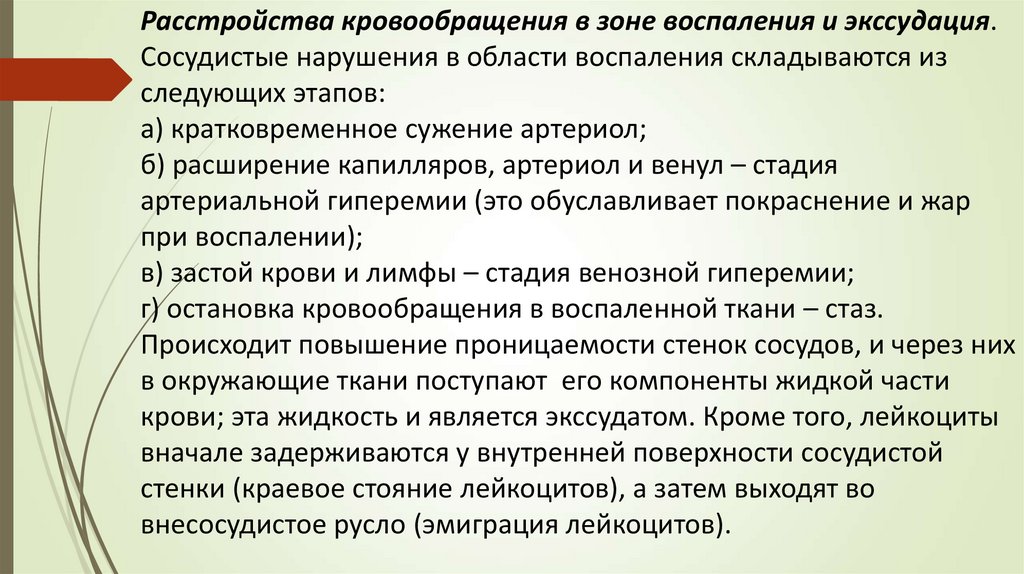 проницаемости сосудов, венозная гиперемия и стаз