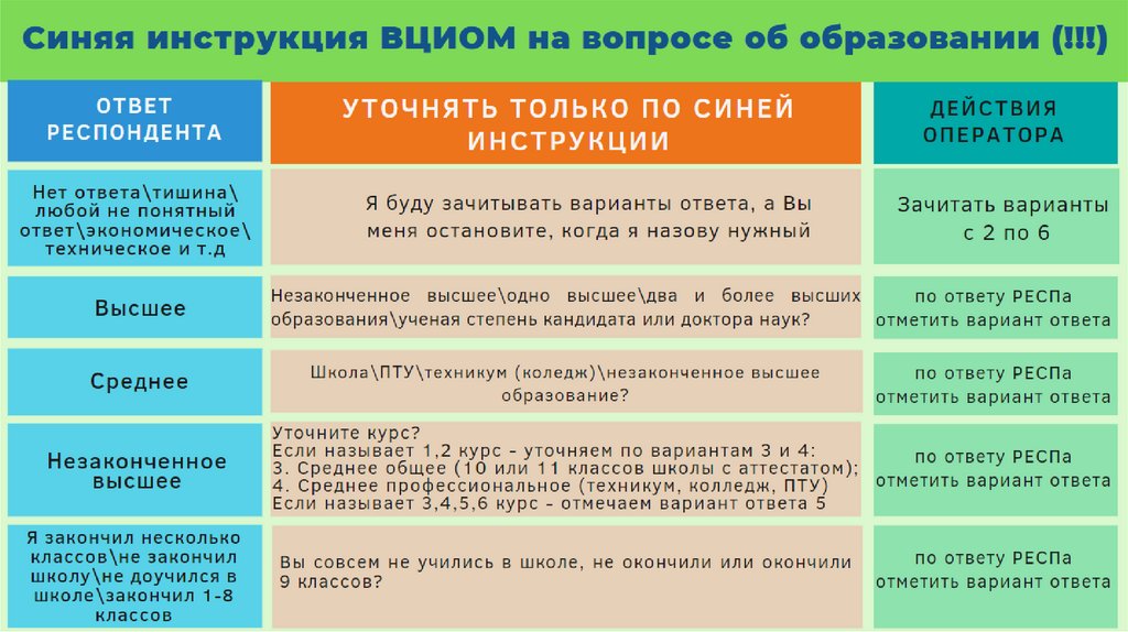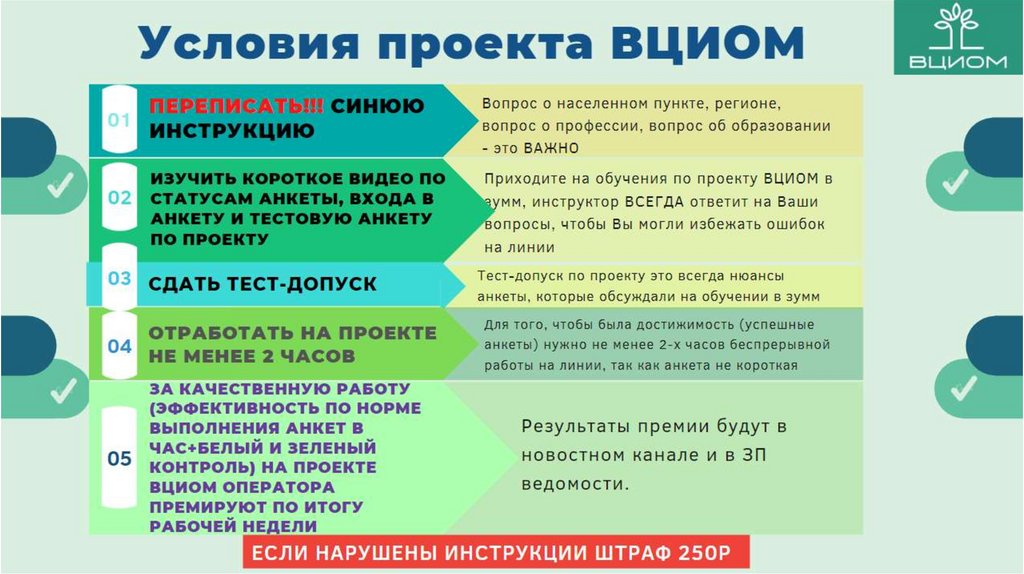 ВЦИОМ. Регламент работы на проекте. Руководство для изучения всем операторам
