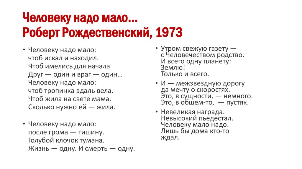 2. Человеку надо мало… Роберт Рождественский, 1973