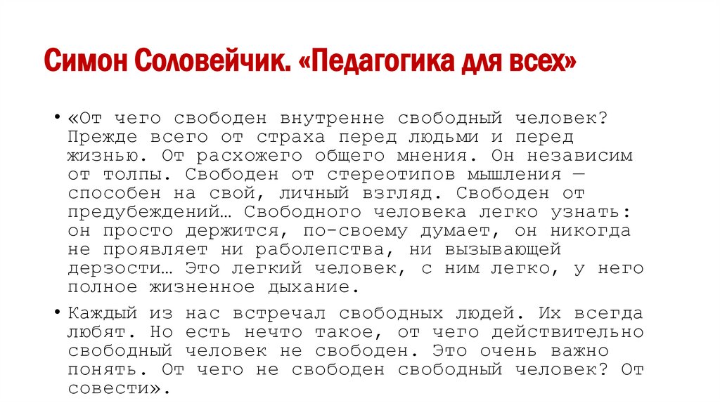 • «От чего свободен внутренне свободный человек?Прежде всего от страха перед людьми и перед