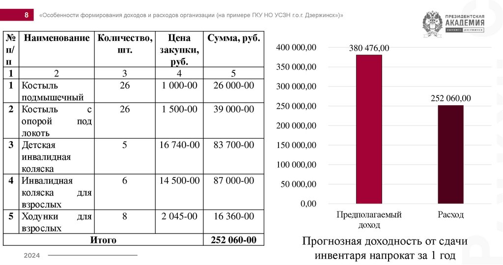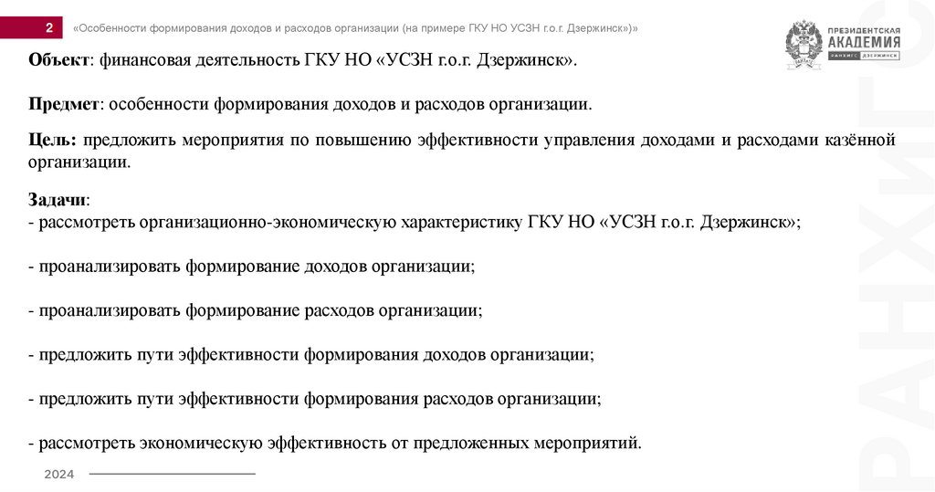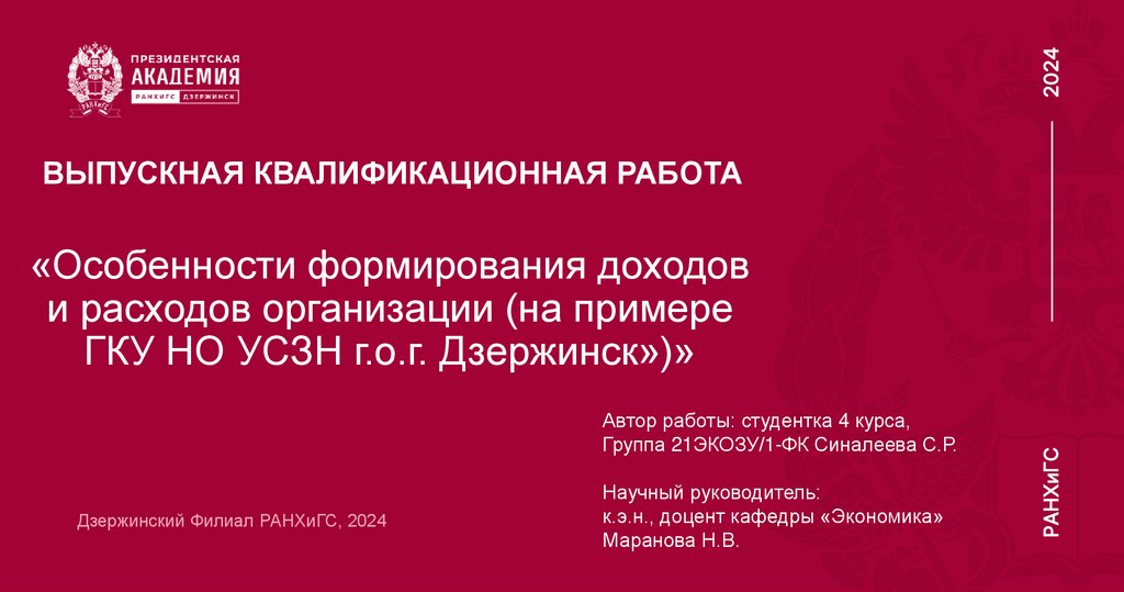 «Особенности формирования доходов и расходов организации (на примере ГКУ НО УСЗН г.о.г. Дзержинск»)»2024