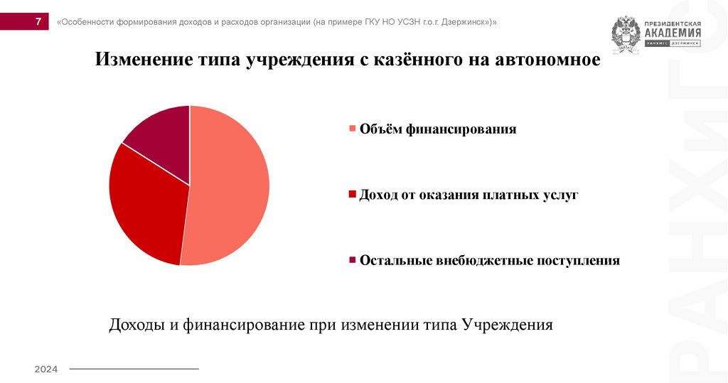 «Особенности формирования доходов и расходов организации (на примере ГКУ НО УСЗН г.о.г. Дзержинск»)»Изменение типа учреждения с казённого на автономное