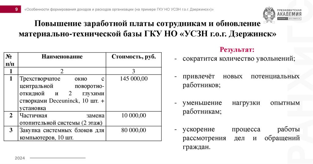 «Особенности формирования доходов и расходов организации (на примере ГКУ НО УСЗН г.о.г. Дзержинск»)»Повышение заработной платы сотрудникам и обновление