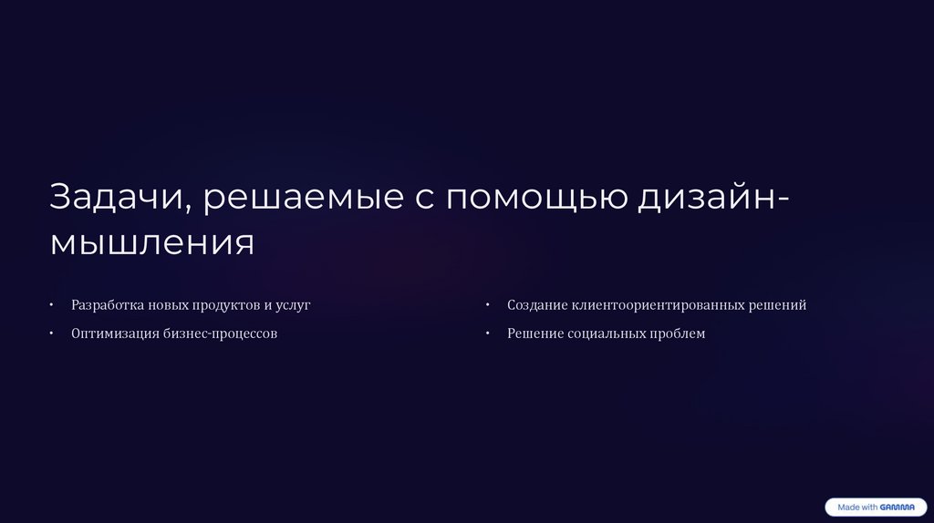 Задачи, решаемые с помощью дизайнмышленияРазработка новых продуктов и услуг
