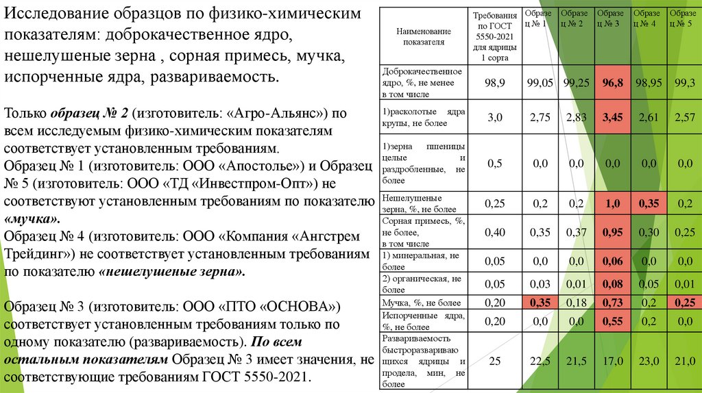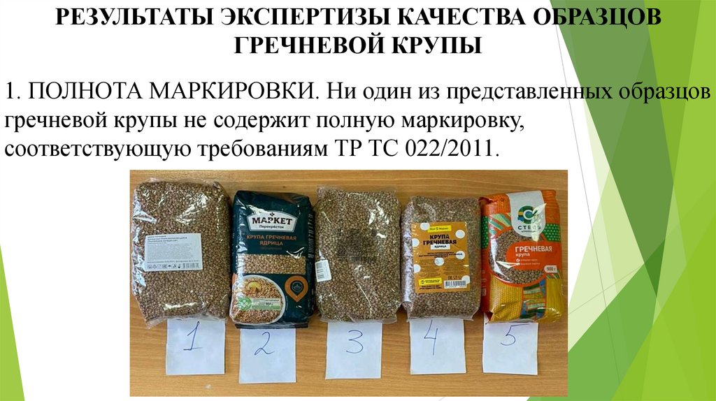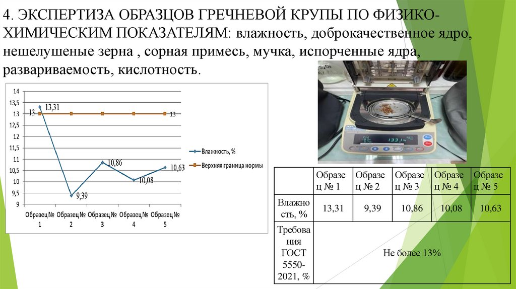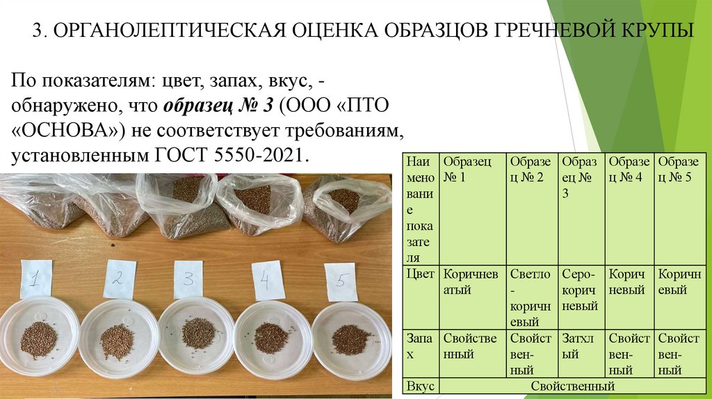 4. Провести экспертизу образцов гречневой крупы по показателям качества
