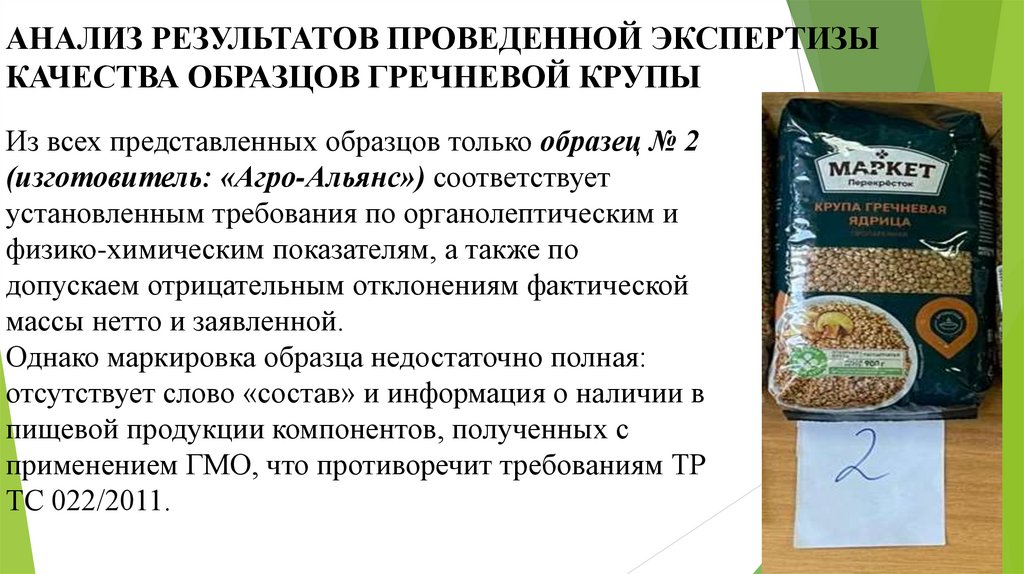 РЕЗУЛЬТАТЫ ЭКСПЕРТИЗЫ КАЧЕСТВА ОБРАЗЦОВГРЕЧНЕВОЙ КРУПЫ