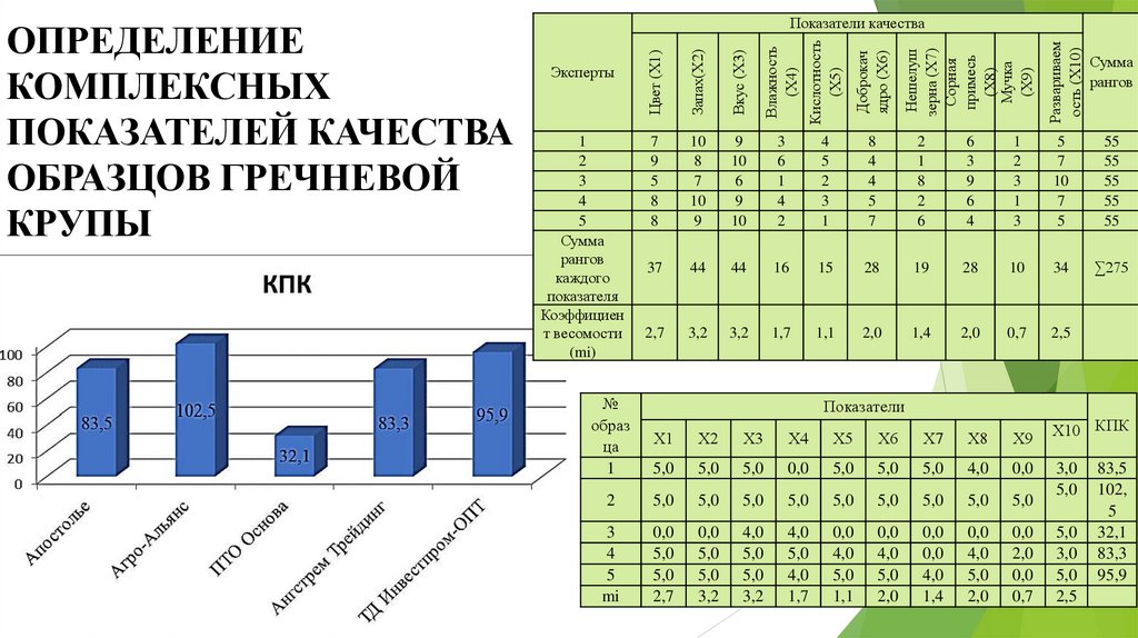 6. Провести экспертную оценку образцов гречневой крупы по комплексным