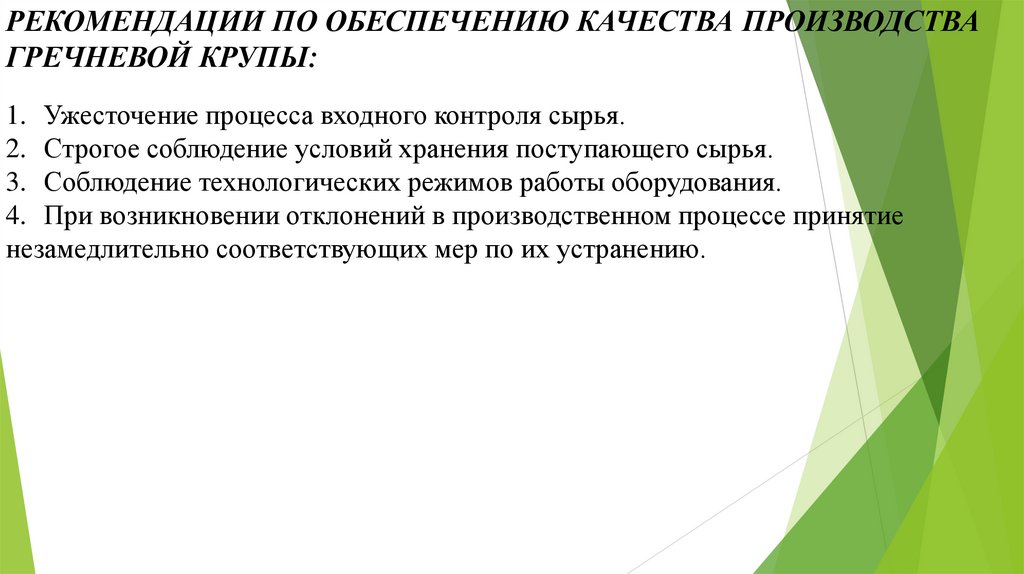 РЕКОМЕНДАЦИИ ПО ОБЕСПЕЧЕНИЮ КАЧЕСТВА ПРОИЗВОДСТВАГРЕЧНЕВОЙ КРУПЫ: