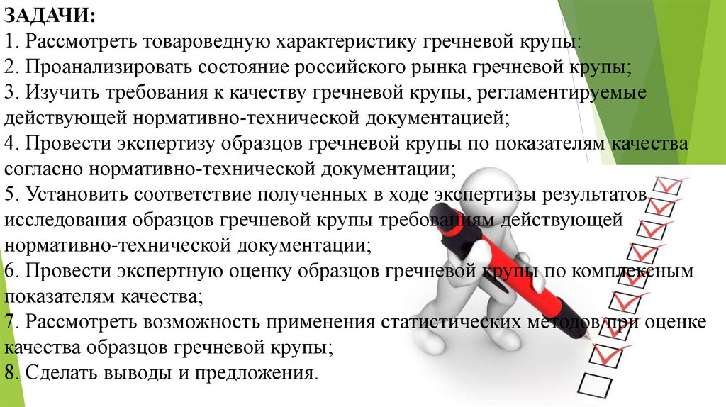 ЗАДАЧИ:1. Рассмотреть товароведную характеристику гречневой крупы: