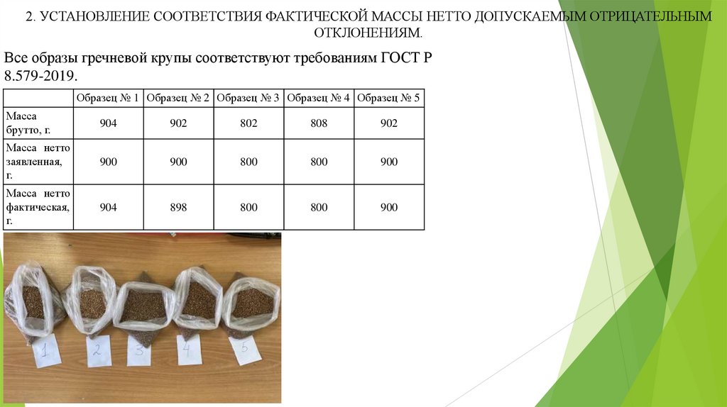 2. УСТАНОВЛЕНИЕ СООТВЕТСТВИЯ ФАКТИЧЕСКОЙ МАССЫ НЕТТО ДОПУСКАЕМЫМ ОТРИЦАТЕЛЬНЫМОТКЛОНЕНИЯМ.