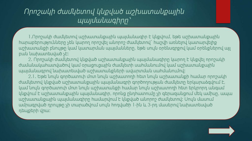 1.Որոշակի ժամկետով աշխատանքային պայմանագիր է կնքվում, եթե աշխատանքային