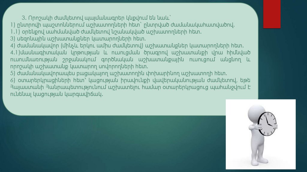 ժամանակահատվածով կամ օրացուցային ժամկետի սահմանումով կամ աշխատանքային