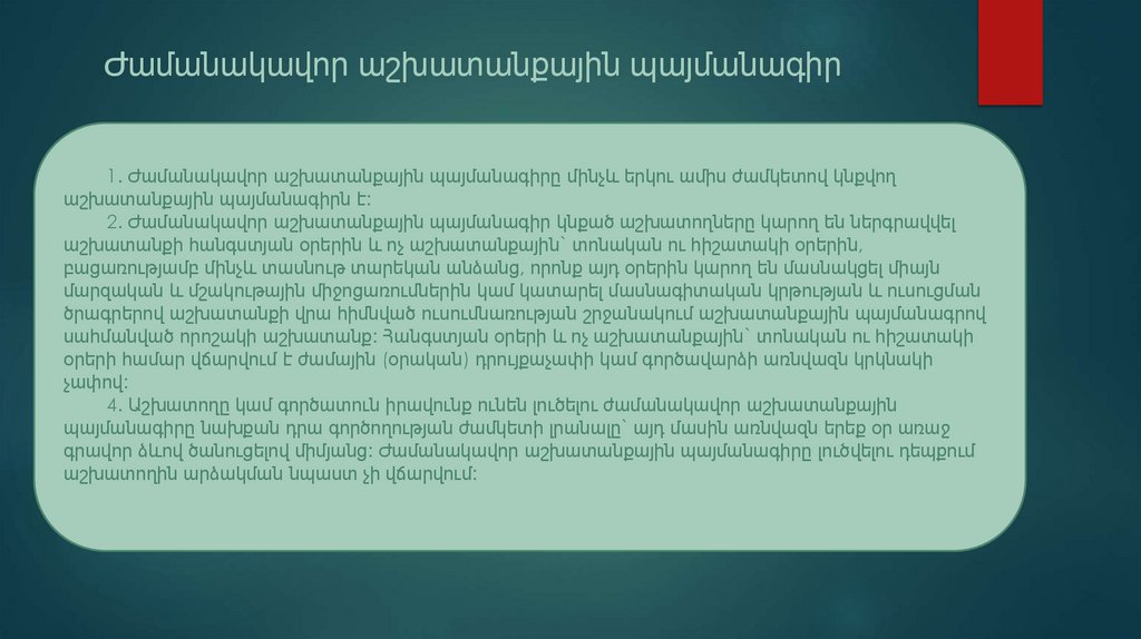 գործատուի սահմանած ժամանակացույցի (գրաֆիկի)։
